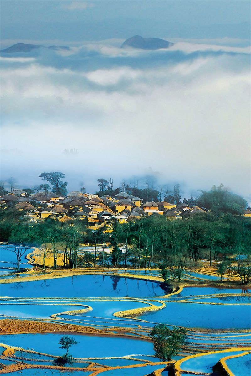 日出日落,云卷云舒,待哈尼梯田灌满水后,天地间的色彩倾斜在万亩梯田之间,犹如一个打翻的调色盘,五光十色,美不胜收。霜降已过,冬日的脚步清晰可闻。这意味着,在那巍峨的山间,哈尼梯田里那纯净的天空,通透的空气,魔幻的光影,都已准备就绪,期待着您的到来。