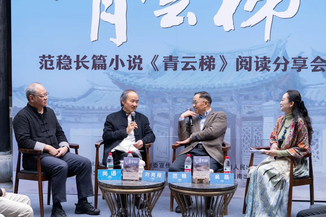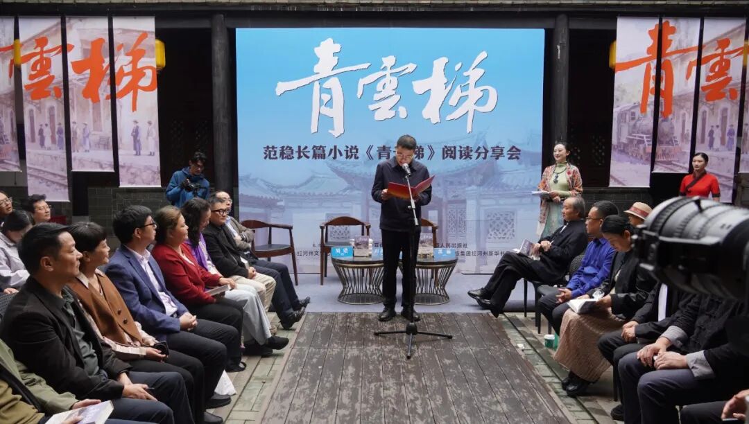 10月25日,由红河州委宣传部、云南人民出版社联合主办的国家一级作家、云南省作协主席范稳长篇小说《青云梯》阅读分享会,在小说吴家花园重要原型地朱家花园举行。红河州委副书记、红河州委宣传部部长应亥宗,红河州文联党组书记、主席岳建青,建水县委书记赵雄,建水县委常委沐圆,云南人民出版社副社长尚语、刘诚林等领导及州县相关部门人员出席活动。著名作家、新疆作协主席刘亮程受邀来到现场,与《青云梯》作者范稳开展作品深度分享,百余位文学爱好者齐聚一堂,在共鸣与回响氛围中,共赴一场文学叙事与云南百年交通史的沉浸式对话。