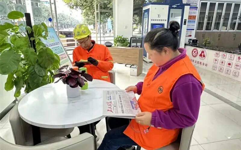 (工会驿站为环卫工人提供便利服务)