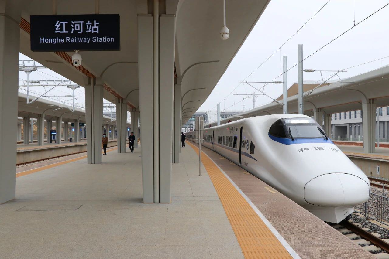 从铁路交通突破发展来看,全力构建骨干铁路网,在全国少数民族自治州率先实现通高铁目标。昆明至蒙自至河口开行了“复兴号”动车,在全省率先实现国门直通动车。南昆客专和弥蒙高铁开通运营,红河从“米轨准轨”进入了“动车高铁”时代。东向铁路通道文蒙铁路已全线开工。在民航布局完善进程中,加快实施“南北通航空”规划,实现弥勒东风机场通航;蒙自机场按年内建成目标推进;元阳机场可研已报国家发展改革委批复。