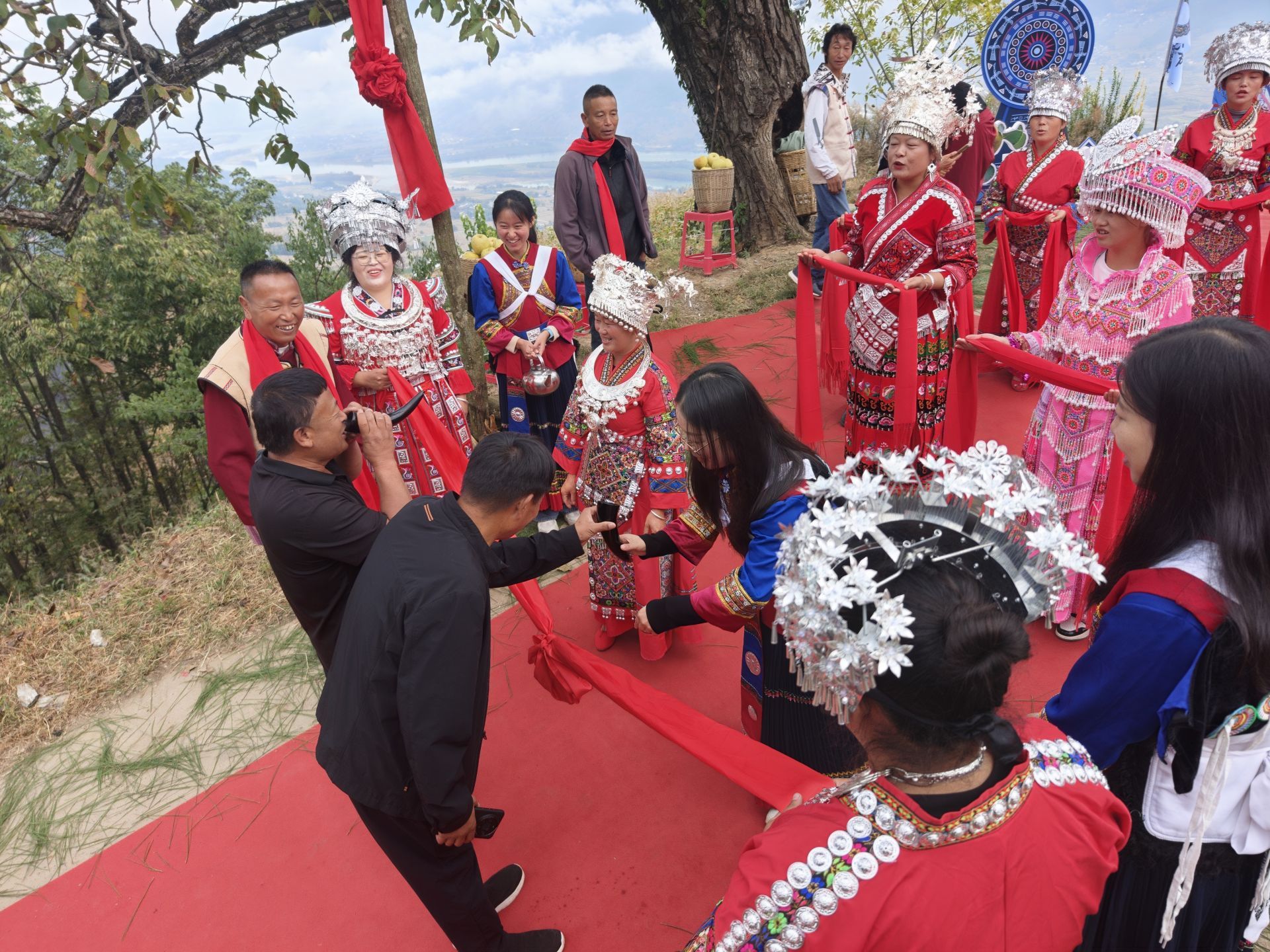 10月25日,丽江市玉龙县石鼓镇四兴村传统苗寨“花山节”暨首届酥梨丰采季在四兴村委会新民小组活动中心开幕。各级领导、各族群众与八方宾朋欢聚一堂,共同见证了一场民族文化与特色产业交融、民族团结与乡村振兴同频共振的精彩盛会。