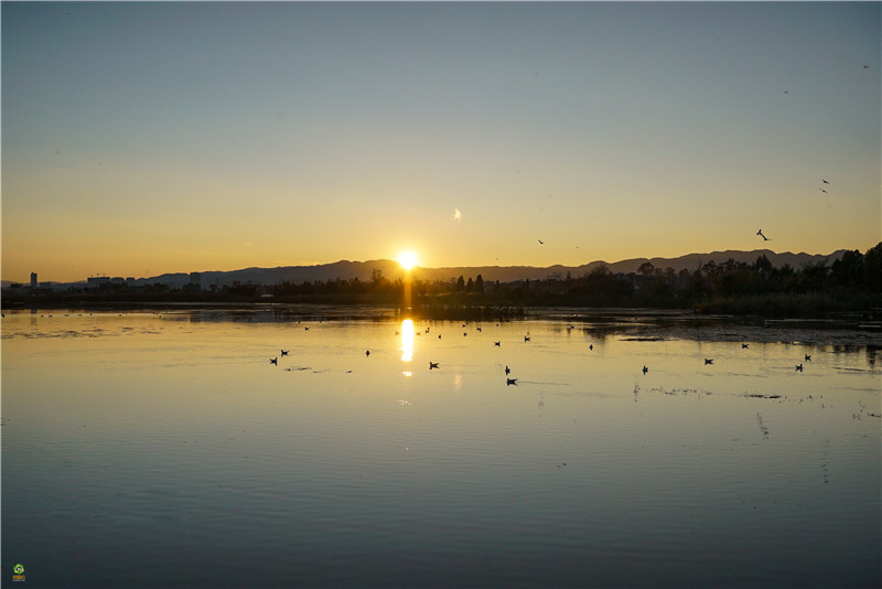 重阳日的滇池,风里裹着水的清润与桂的余香。岸边的芦苇荡已染成浅黄,风吹过时,芦花便乘着秋风轻轻飘舞,有的落在水面,随水波荡漾开细碎的纹,有的被秋风推向更远的地方。游人多是携家带口来的,老人们坐在临水的石阶上,手里攥着刚买的重阳糕,偶尔掰一块递给身边的孩童。孩童捧着糕,跑到湖边看水鸟——几只白鹭掠着水面飞,翅膀沾起的水珠在阳光下闪着金光。傍晚时,夕阳把滇池染成暖橙,水面像铺了层碎金。近处有人铺开野餐垫,轻声谈笑着,不远处也有三三两两的人指着水面闲聊,声音混着波浪拍岸的轻响,慢慢融进暮色里。没有喧嚣,只余秋阳、碧水与人间的软暖,成了滇池重阳最妥帖的模样。