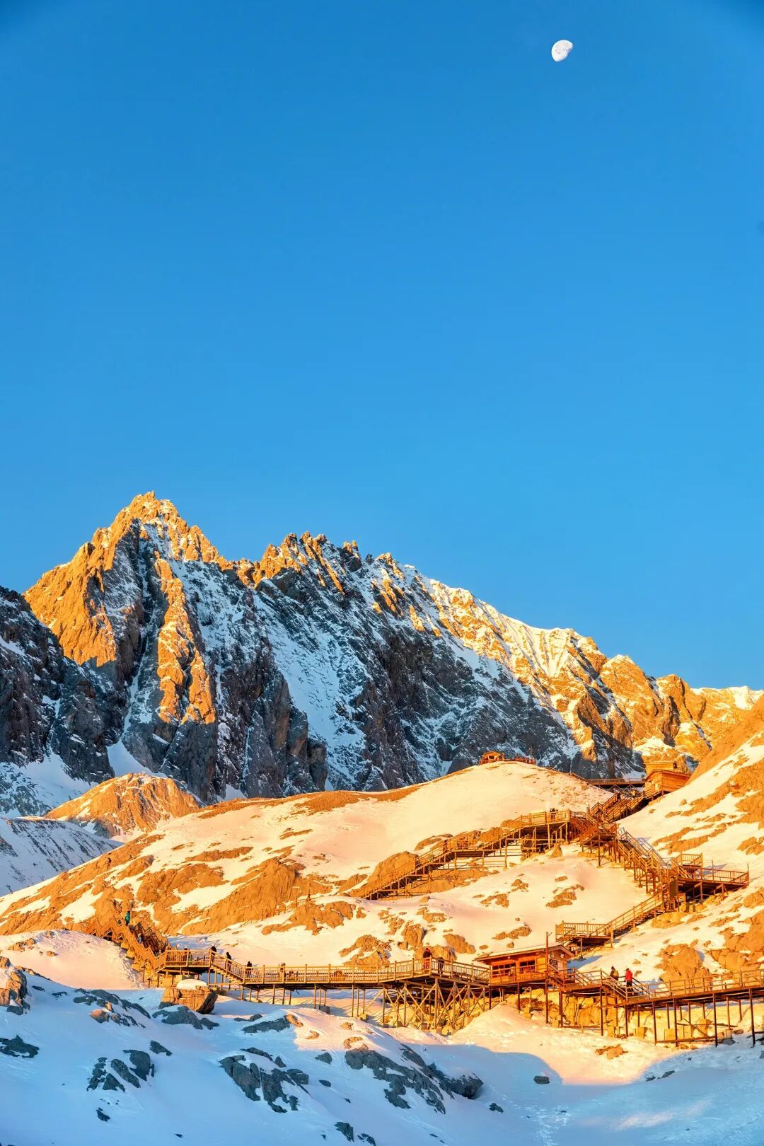 秋天的玉龙雪山,少了夏季的云雾缭绕,多了一份清澈和壮阔。湛蓝的天空下,洁白的雪山巍峨耸立,山顶的积雪在阳光的照耀下闪闪发光。