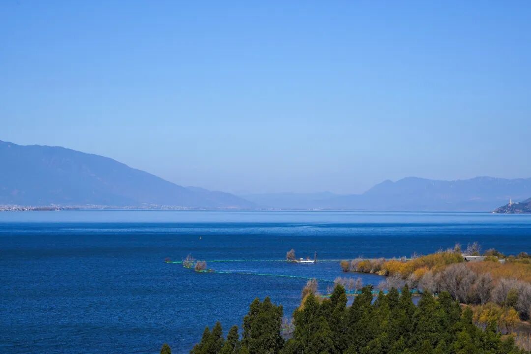 秋天的洱海,褪去了夏季的燥热,多了一份宁静和浪漫。湛蓝的湖水与蓝天相接,远处的苍山云景变幻,岸边的树木渐渐变黄,构成了一幅绝美的画卷。