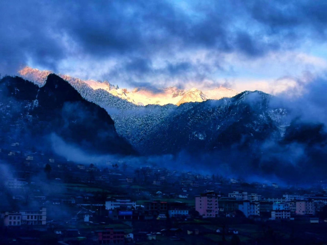 随着太阳升起,雪山的颜色慢慢变化,从浅粉色到金黄色,最后变成洁白的本色,每一刻都让人惊叹。此外,秋天的蓝月谷也格外美丽,湖水湛蓝如宝石,搭配四周的雪山和森林,仿佛人间仙境。