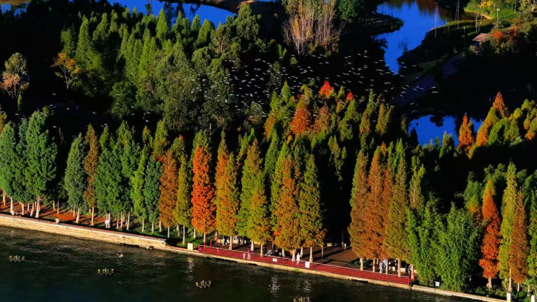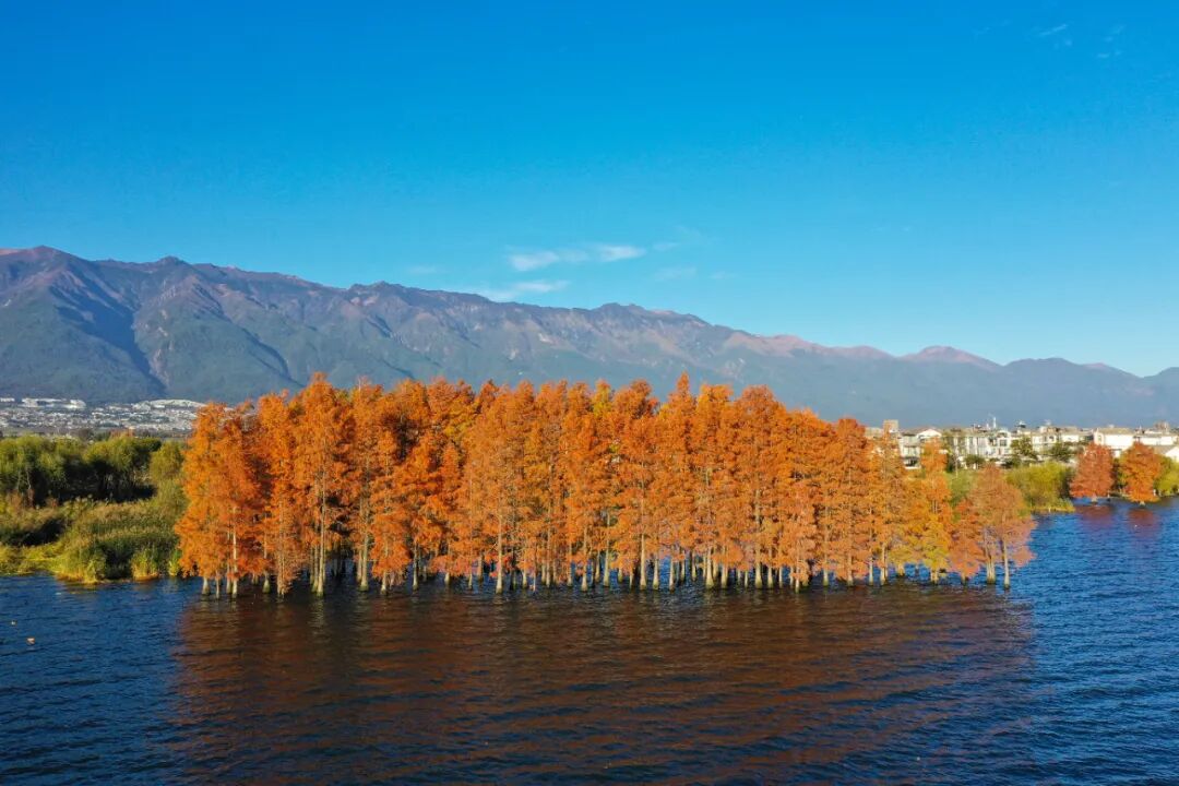 作为昆明的“宝藏湿地”,捞渔河湿地公园绝对是追寻浪漫的好去处。此时的水杉开始慢慢变红,倒映在清澈的湖水中,形成绝美的“水上森林”景观,随手一拍都是ins风大片。