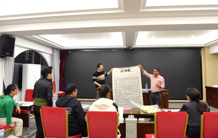 培训班邀请了红河州书法家协会副主席、蒙自市书法家协会主席冷建卫,红河州书法家协会秘书长、蒙自市书法家协会副主席、红河职业技术学院副教授史婧婧进行授课。课程重技法传授,更重心性滋养,以楷书临摹与创作为主线,系统覆盖学书准备、基本笔画、间架结构、偏旁规律,以及从临摹到创作的全过程训练。通过现场讲解示范、课后作业练习与互动交流点评相结合的方式,全面提升学员的临帖能力与创作水平。