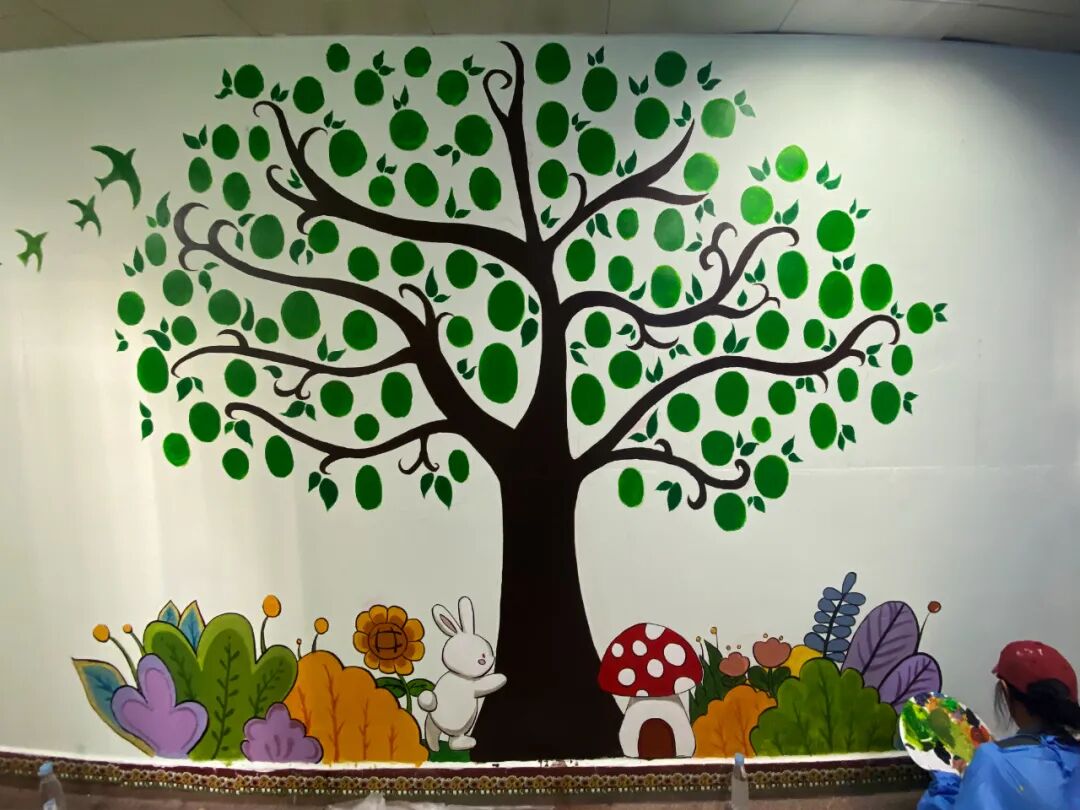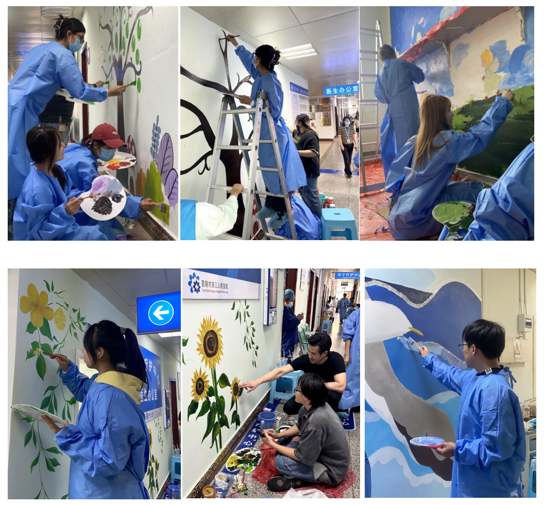 在美术系教师的带领下,同学们运用手中的画笔,将色彩与故事带进了病房,使原本安静的墙面焕发出生动与温暖。患者们在欣赏画作的过程中,感受到希望、力量与关怀,每一幅墙绘都传递着安宁疗护科室深厚的人文理念,以及“生命的温柔与绽放”信念。