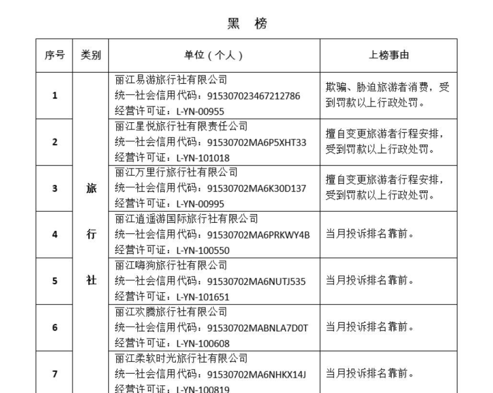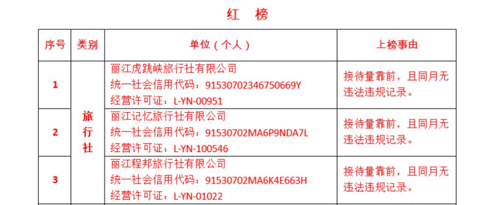 近日,云南省丽江市发布2025年4月文旅“红黑榜”,详情如下: