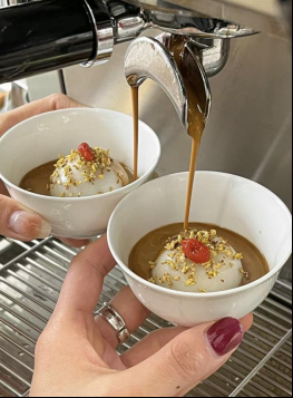 咖啡汤圆:是云南保山龙陵县镇安镇岭干村的村民在日常生活中创造出来的特色美食 。村民们在元宵节时将研磨、冲煮后的咖啡加入糯米面中,制作出咖啡汤圆,寓意生活有苦有甜 。此外,当地还有将黑芝麻汤圆煮熟后倒入咖啡液体中制成的咖啡黑芝麻汤圆,口感独特 。在传统汤圆的糯米皮中加入少量咖啡粉。咬开后,糯米的软糯、馅料的香甜与咖啡的微苦交织,口感丰富不腻,是甜品店或家庭聚餐的创意甜汤,尤其受年轻群体喜欢。