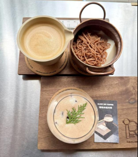 豆花米线拿铁:豆花米线拿铁是云南昆明的特色创意饮品,它将昆明传统小吃豆花米线与咖啡巧妙融合。栗子泥制作的“米线”甜而不腻,豆花布丁口感软软糯糯,燕麦拿铁则带来醇厚的奶香与咖啡香。混合之后,米线会在拿铁中逐渐融化,形成独特的口感,既有豆花的细腻、栗子泥的软糯,又有燕麦拿铁的醇香。豆花米线拿铁是云南饮食文化创新的体现,它将本土特色小吃与咖啡这一外来饮品相结合,既展现了云南丰富的饮食文化底蕴,又满足了当下消费者对于新奇、创意美食的需求,成为昆明咖啡文化的一个独特符号。