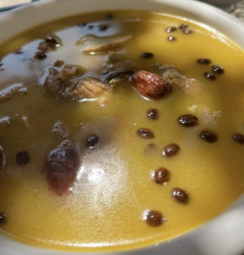 咖啡炖鸡:这是云南最具代表性的咖啡吃法,尤其在普洱、保山等咖啡产区流传甚广。选用本地散养土鸡或鸡腿,搭配新鲜咖啡鲜果或中度烘焙的咖啡豆,加姜片、葱段等简单调味,小火慢炖1-2小时。咖啡的焦香与鸡肉的鲜香深度融合,汤色金黄,肉质软烂,咖啡的微苦中和了鸡汤的油腻,尾韵带淡淡的果香甜,既是家常菜也是当地农家乐的特色菜,还被称为“产区滋补硬菜”。