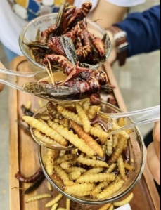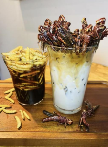 昆虫咖啡:云南普洱的一家咖啡店推出了蚂蚱拿铁、竹虫美式、老土蜂拿铁等昆虫咖啡。这些昆虫经过清洗并炸熟后,可直接配咖啡,顾客既可以将烤制过的昆虫蘸盐或辣椒面单独食用,也可以将其直接加入咖啡中饮用。