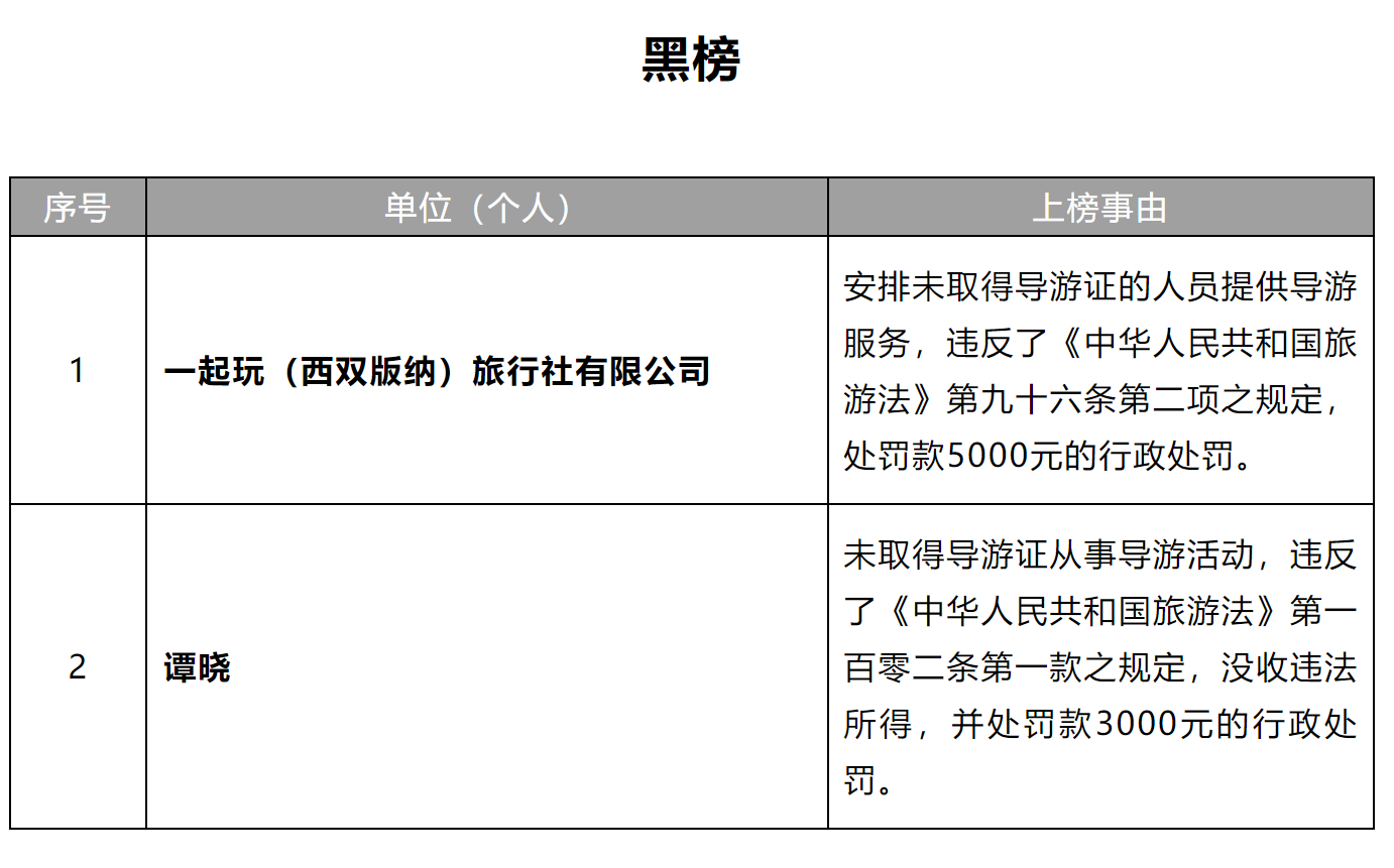 来源:“七彩云南文旅执法”微信公众号、“西双版纳文旅”微信公众号、昭通市文化和旅游局责编 邢梦芸校对 刘榕杉审核 于轩昂
