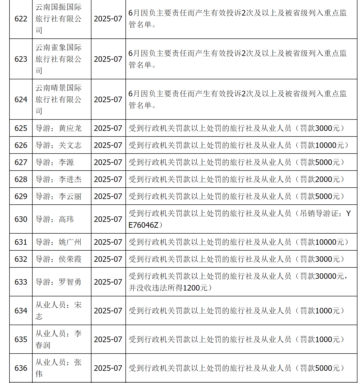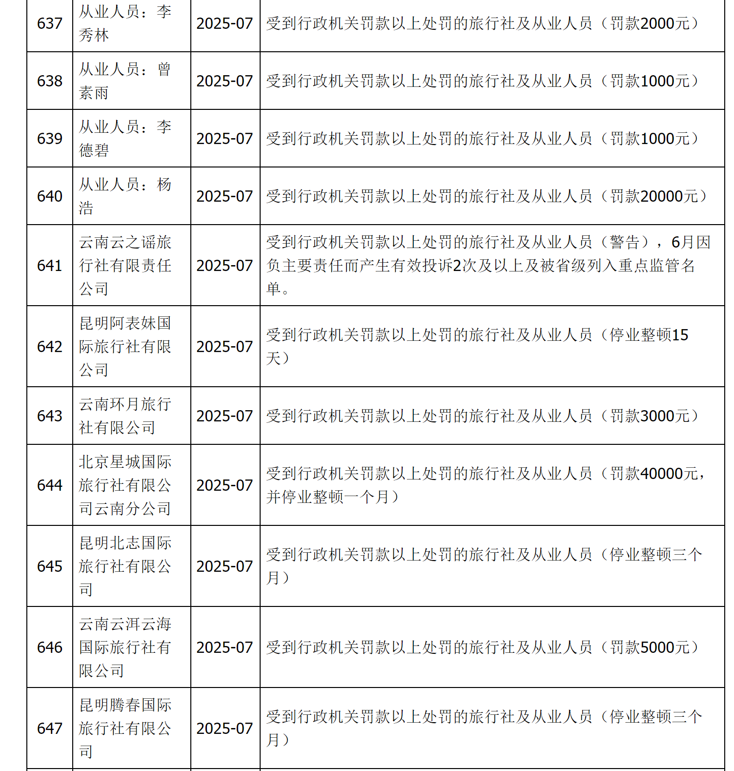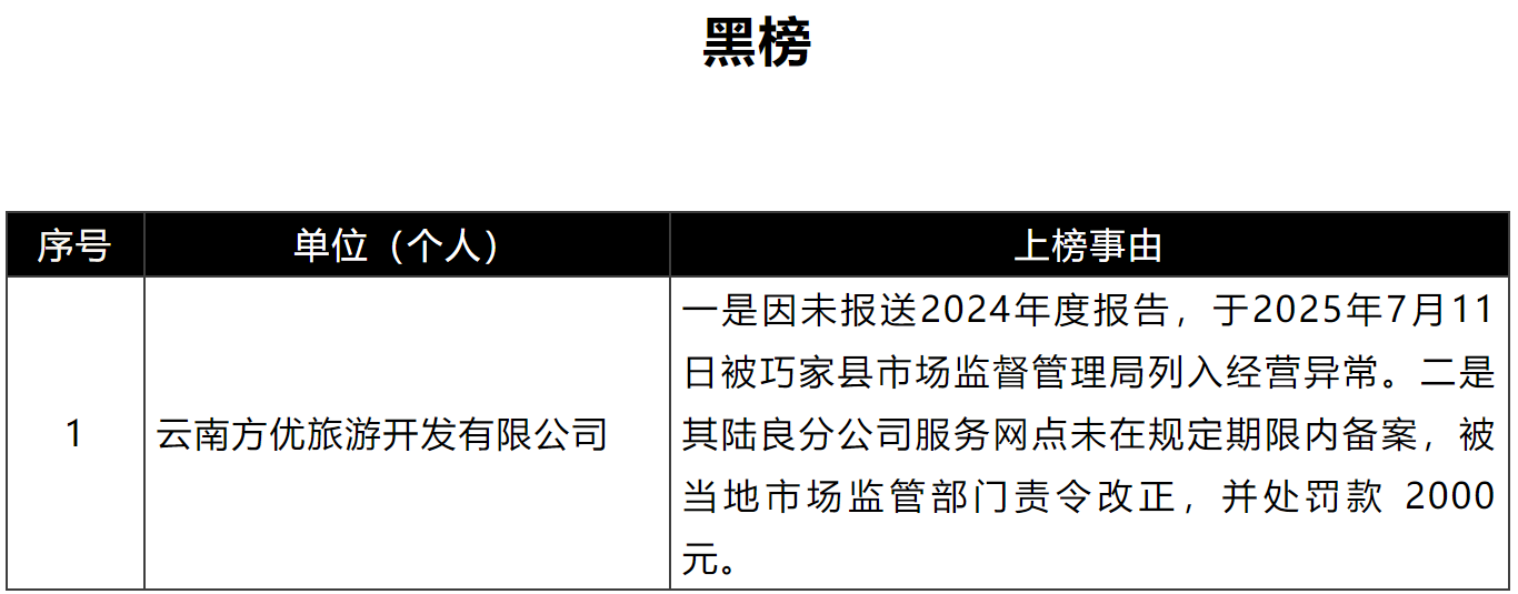今日,云南省昆明市发布2025年7月文化和旅游“红黑榜”,现将2025年7月“红黑榜”信息发布如下: