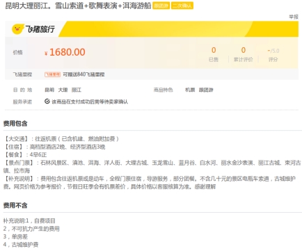 该旅游产品广告链接:昆明大理丽江。雪山索道+歌舞表演+洱海游船