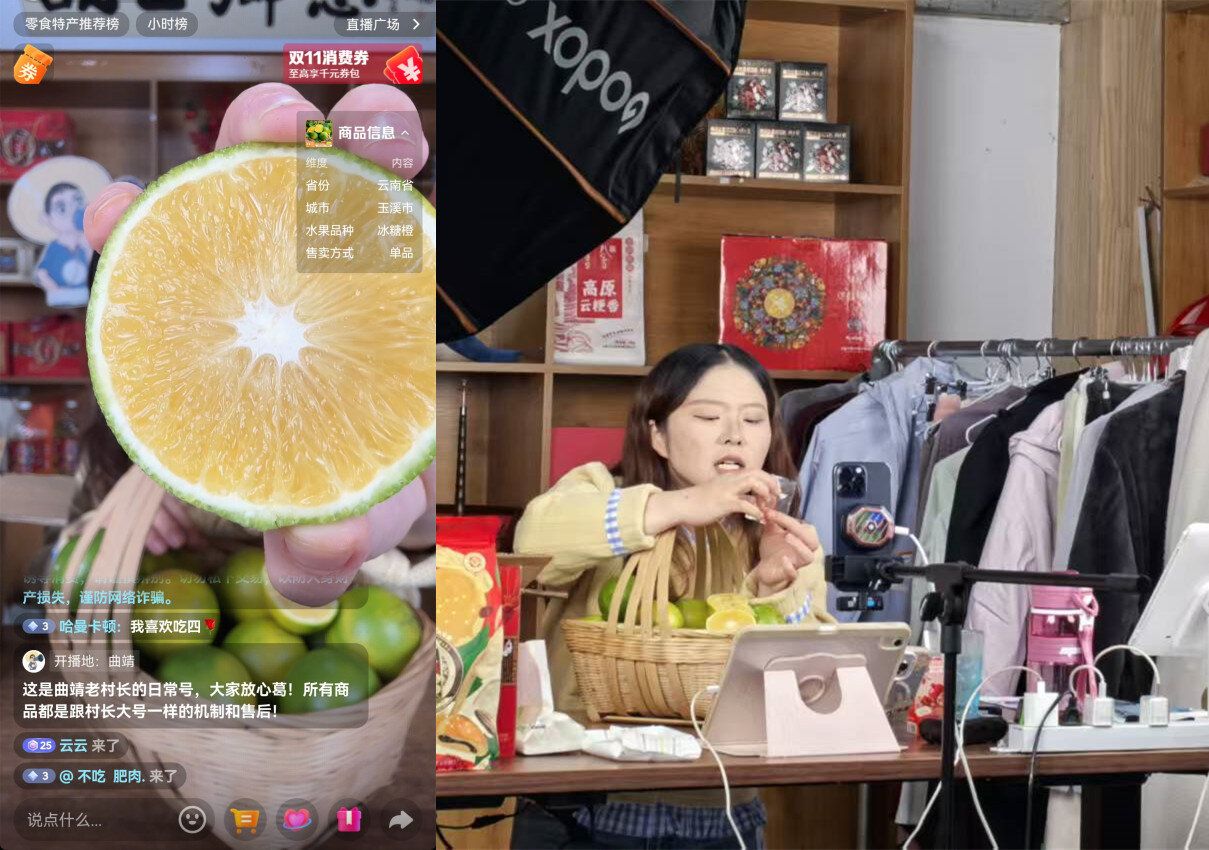 主播张竟丹正在讲解哀牢山冰糖橙。