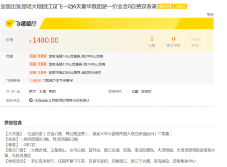该旅游产品广告链接:全国出发昆明大理丽江双飞一动6天奢华跟团游一价全含0自费双表演