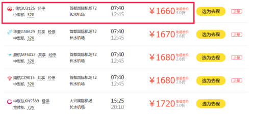 从行程看,北京至昆明出发时查询的往返机票价格最低为1660元。