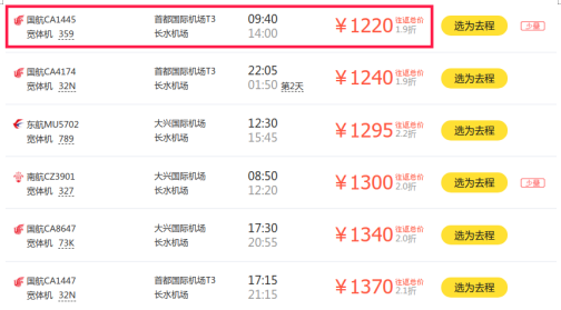 从行程看,北京至昆明出发时查询的往返机票价格最低为1220元。