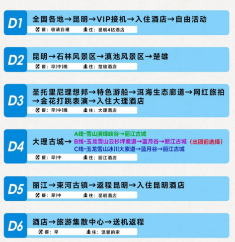该旅游产品广告链接:云南昆明大理丽江6天5晚跟团游石林洱海圣托里尼丽江古城玉龙雪山