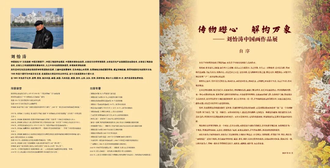 本次展览集中展现了刘怡涛先生近年来呕心沥血创作的66幅精品力作。展览以“传物遊心 解构万象”为主题,既是对刘怡涛先生艺术追求的精准提炼,也是对新时代文化使命的生动回应。这些作品里有对西双版纳雨林生境的深情礼赞,有对民族文化交融的细腻观察,更有对“人与自然和谐共生”理念的艺术表达——展览作品不仅是笔墨的呈现,更是情感的温度、思想的深度、文化的厚度。