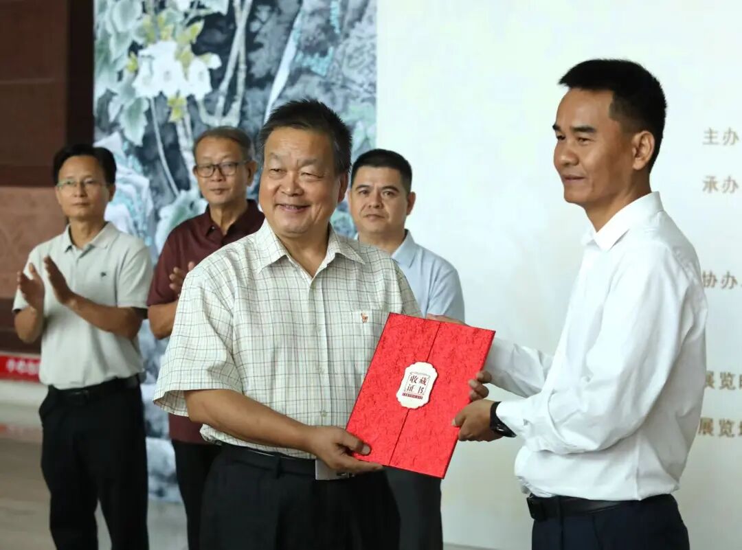仪式上,刘怡涛先生将正在展出的1件名为《幽林晨霧石斛馨》的精品无偿捐赠给西双版纳州文化馆(美术馆),其捐赠之举,体现了刘怡涛先生的崇高品格和他对艺术事业的赤诚之心和对民族文化的深厚情怀。