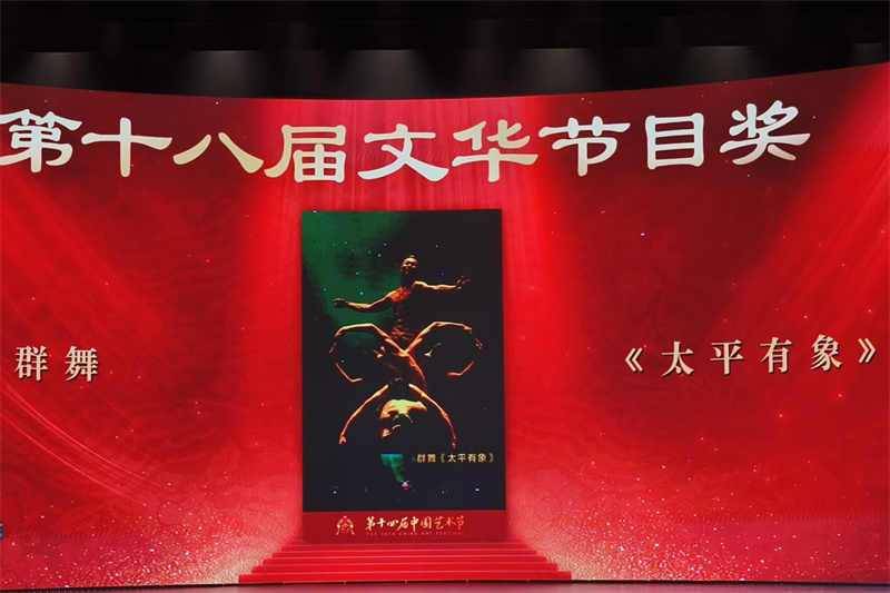 11月4日晚,第十四届中国艺术节闭幕式暨第十八届文华奖颁奖典礼在重庆举行。由云南省文化和旅游厅选送,云南演艺股份有限公司(云南省歌舞剧院)创演的舞蹈《太平有象》从45部入围终评的节目中脱颖而出,喜获本届文华节目奖。(来源:文旅头条新闻网)