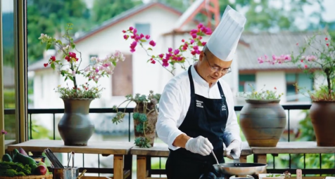 清晨的咖啡林还挂着露水,有风咖谷行政总厨兼餐饮总监利忠已走向林间的鸡舍。这里的土鸡以掉落的山地咖啡果为食,肉质紧实中带着独特的果木香气。“选材是第一步,更是关键的一步,”他说,“健康安全的食材,经过充满爱心的烹调,才能成为真正打动人的美食。”