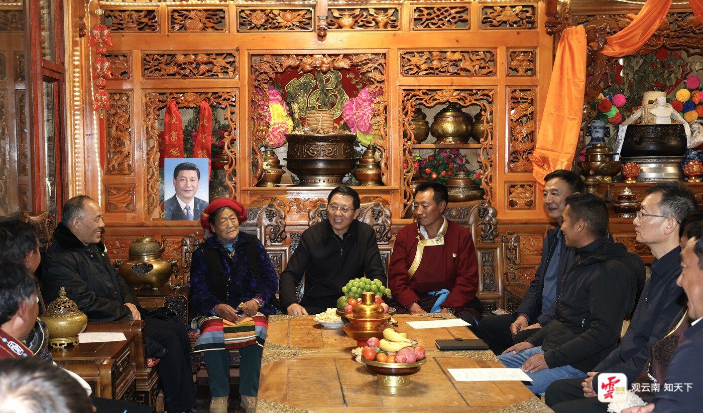 王予波到德钦县雨崩村阿那主家里,向基层干部群众宣讲党的二十届四中全会精神。