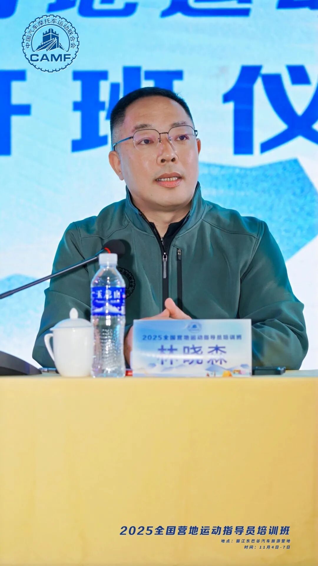 在开班仪式上,各相关单位领导先后致辞,为培训工作锚定方向。中汽摩联社会服务部主任林晓森围绕中国自驾营地与星级营地建设发展现状、户外露营产业未来趋势及营地人才培养核心价值展开开班动员。他强调,当前户外露营产业正处于高速发展期,高素质专业人才是推动产业规范化、品质化发展的关键支撑,呼吁全体学员珍惜学习机会,深耕专业知识,切实提升业务能力。