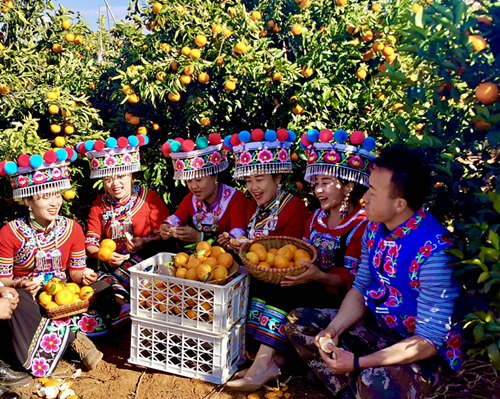 节庆造势,从产品外销转向游客内流。戌街乡积极发挥节庆活动的集聚效应,巧用“正月十四赶戌街”“农民丰收节”“白沙秋会”等特色节庆,打造农文旅融合体验场景。“沃柑产品展销暨非遗活动”成为亮点之一,展销区内金黄饱满的沃柑堆叠如小山,果香四溢,吸引众多游客驻足品尝;一旁的非遗展示区则陈列着彝族刺绣、民间弦子等手工艺品,让游客在品味鲜果的同时,沉浸于浓郁的地方文化氛围之中。