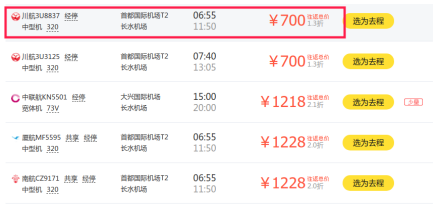 从行程看,北京至昆明出发时查询的往返机票价格最低为700元。
