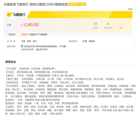 该旅游产品广告链接:云南旅游飞猪旅行 昆明大理丽江6天5晚跟团游