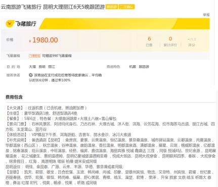 该旅游产品广告链接:云南旅游飞猪旅行 昆明大理丽江6天5晚跟团游