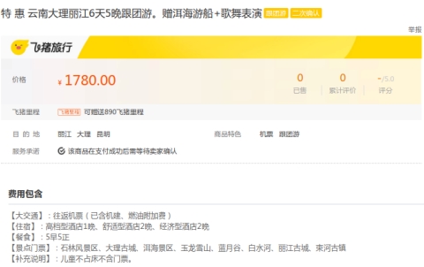 该旅游产品广告链接:特 惠 云南大理丽江6天5晚跟团游。赠洱海游船+歌舞表演