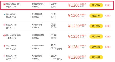 从行程看,北京至昆明出发时查询的往返机票价格最低为1201元。