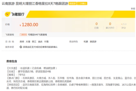 该旅游产品广告链接:云南旅游 昆明大理丽江香格里拉8天7晚跟团游