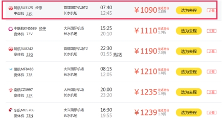 从行程看,北京至昆明出发时查询的往返机票价格最低为1090元。