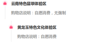 该旅游产品,涉及“云南特色翡翠体验区、黄龙玉特色文化体验区”两个购物点。