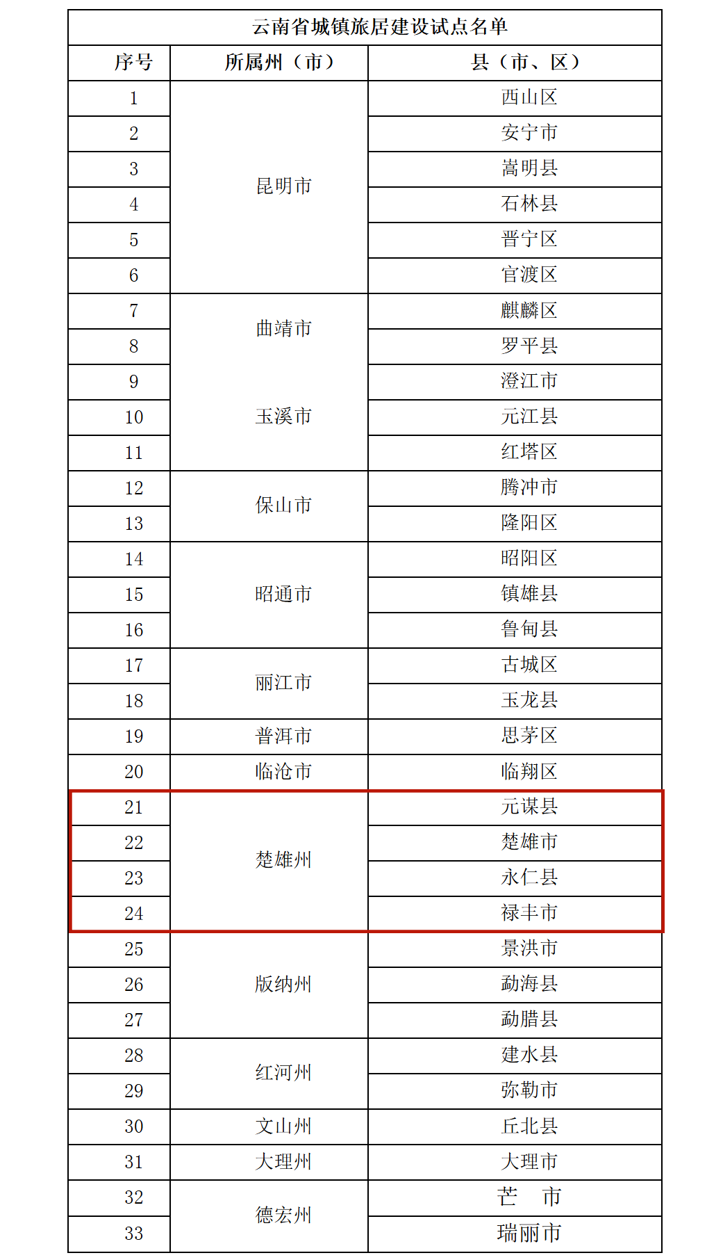 日前,云南省住房和城乡建设厅正式公布“旅居云南”城镇建设试点名单,本次试点共涵盖全省33个县(市、区),楚雄州楚雄市、禄丰市、元谋县、永仁县成功入选试点名单,为“旅居楚雄”建设打下坚实基础。