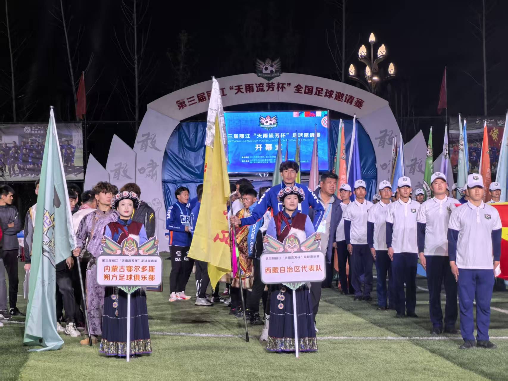 11月7日晚,第三届丽江“天雨流芳杯”全国足球邀请赛在激昂的鼓点与绚丽的灯光中拉开帷幕。来自西藏、内蒙古、青海、甘肃、福建、广西、贵州等8个省的球队,以及丽江本土8支球队齐聚一堂,开启绿茵较量,以足球为媒,共绘民族团结与体育精神的动人画卷。