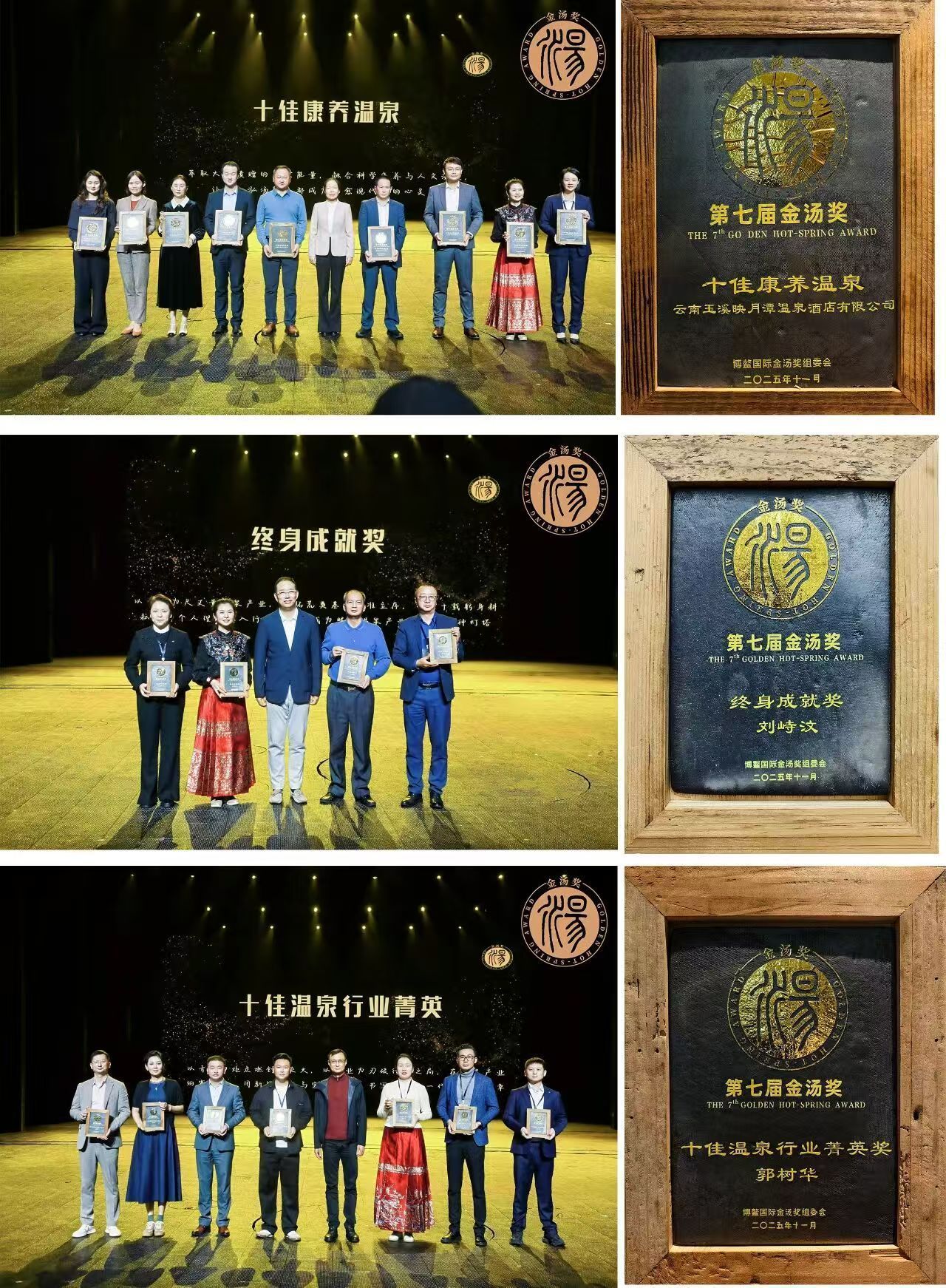 11月7日,第七届金汤奖颁奖典礼在江西宜春明月山温泉风景名胜区举行,映月潭温泉荣获“十佳康养温泉”奖、总经理刘峙汶荣获“终身成就”奖、副总经理郭树华荣获“十佳温泉行业菁英”三个奖项!