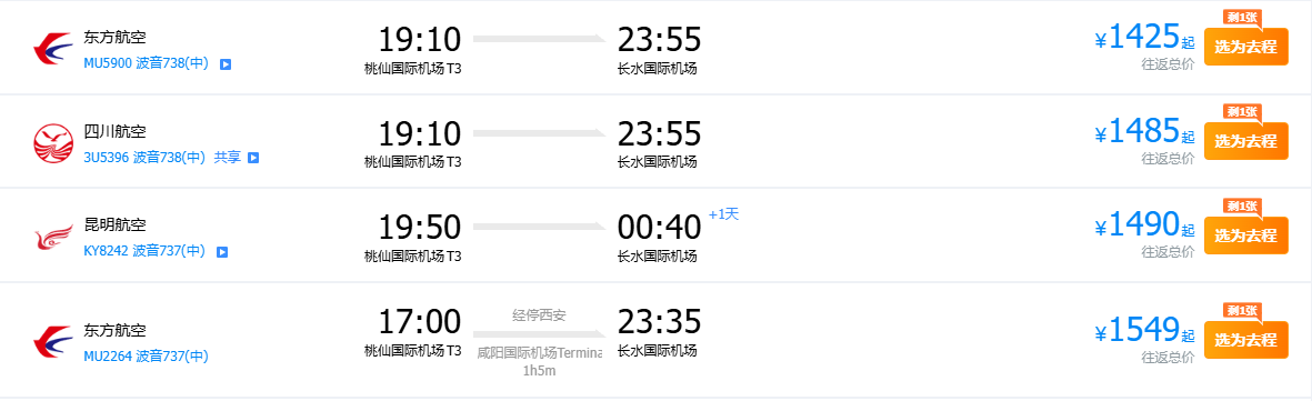 从行程看,从重庆至昆明出发时查询的往返机票价格最低为1425元。