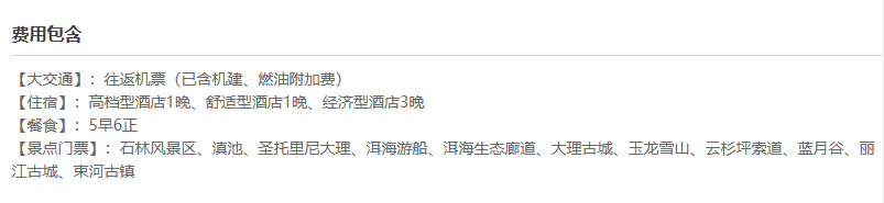 此行程包含往返机票、住宿、餐饮、景区门票、云南省内交通等费用