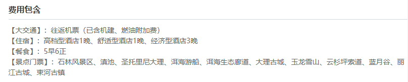 此行程包含往返机票、住宿、餐饮、景区门票、云南省内交通等费用