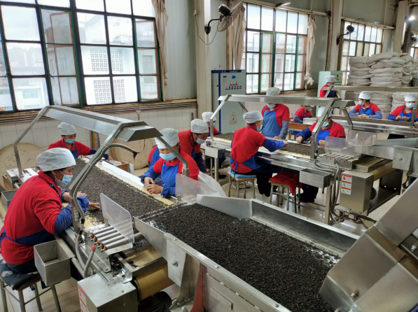 在过去的生产过程中,拣剔环节一直是制约产能提升的关键瓶颈。毛茶生产受自然环境等多种因素影响,在生产过程中难免会掺入各类杂质,而这些杂质的去除,以往主要依赖人工操作。为突破这一发展瓶颈,大益勐海茶厂于2023年与广州光信科技有限公司展开深度合作,双方利用视觉+光谱的先进技术,共同研发出一条智能拣剔实验线。一年多来,该实验生产线杂质拣出率达到100%,效率是人工的3倍。