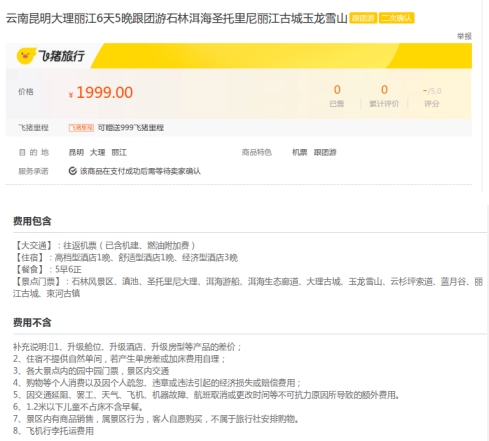 该旅游产品广告链接:云南昆明大理丽江6天5晚跟团游石林洱海圣托里尼丽江古城玉龙雪山