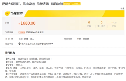 该旅游产品广告链接:昆明大理丽江。雪山索道+歌舞表演+洱海游船