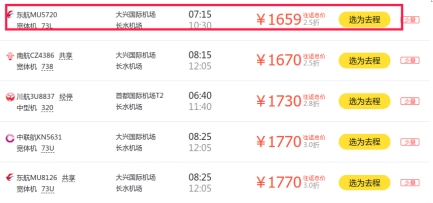从行程看,北京至昆明出发时查询的往返机票价格最低为1659元。